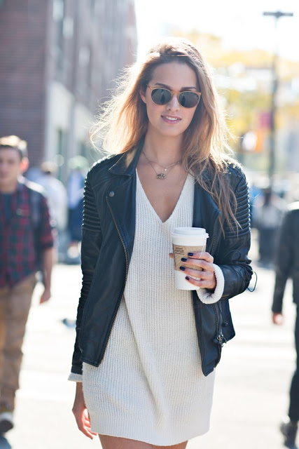 - E misturem materiais diferentes à discrição. Ganga com acetinado com pele com pêlo, etc. Estão à vontade no número de materiais que podem misturar e a complexidade que o vosso look ganha também tem o bónus de vos fazer parecer um milhão de euros mais ricas – em estilo, pelo menos. 😉
