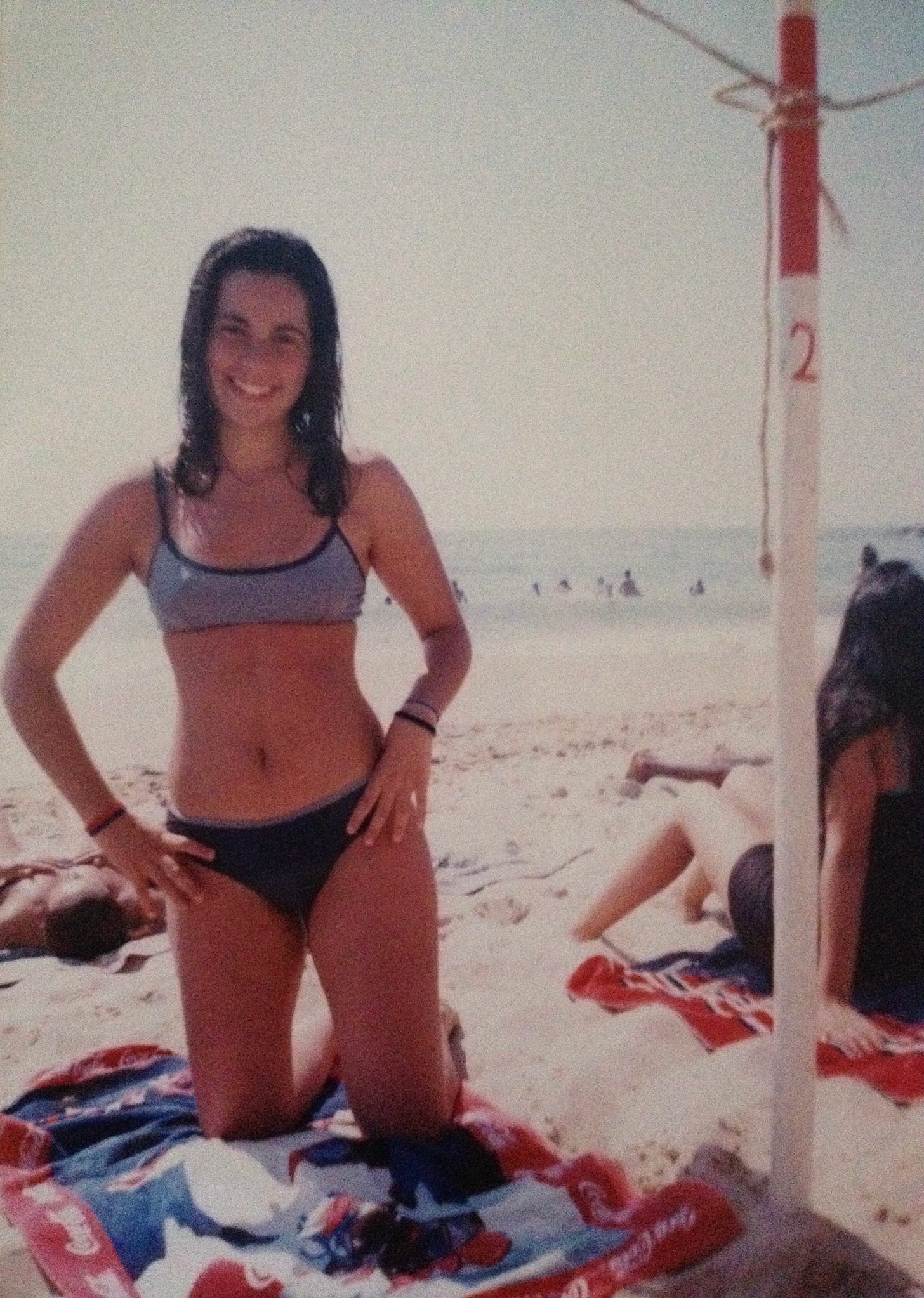 Aqui nesta foto devia ter uns 14 anos ou 15 anos, desconfortável de biquini embora esteja a fingir bem, e as dietas e o controlo já começavam a cansar. Aos 16 não aguento mais a restrição e ganho o início de uma compulsão alimentar. Mas isso fica para outro episódio.